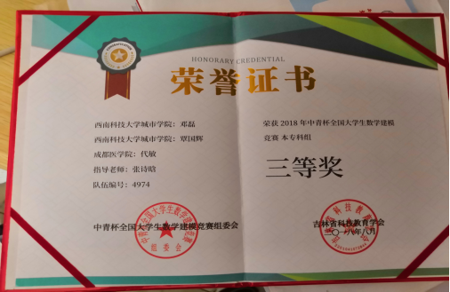 本专业积极极鼓励学生参与各类竞赛,在教师的悉心指导和同学们的共同努力下,参加第十六届挑战杯、全国大学生数学建模大赛、“数学中国”网络挑战赛、互联网+创新创业等行业大赛多项国家级、省级奖项。
