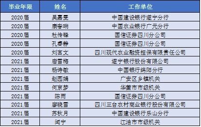 金融工程专业毕业生就业率每年保持95%以上部分就业典型如下所示: