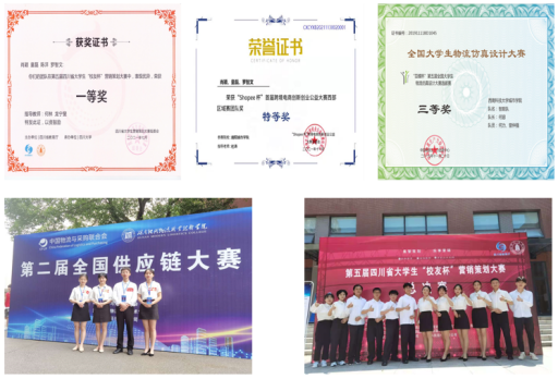 本专业积极鼓励学生参与各类竞赛,在教师的悉心指导和同学们的共同努力下,参加全国大学生物流设计大赛、智慧供应链创新创业挑战赛、物流仿真设计大赛、市场营销策划大赛等各级各类赛事等各级各类赛事10余项,获得特等奖、一等奖、二等奖、三等奖等10余项,提升学生专业知识水平的同时也丰富了学生的课余生活。