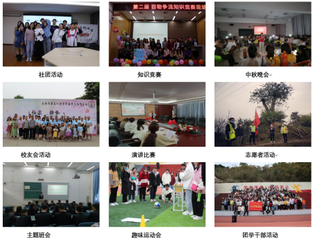 学生们通过参加社团活动、知识竞赛、中秋晚会、研究比赛、志愿者服务主题班会等等活动丰富课余生活,践行学校“博学、笃行、严谨、创新”的校训,树立民主、科学、自由、进步的崇高理想,提升自身整体素质。