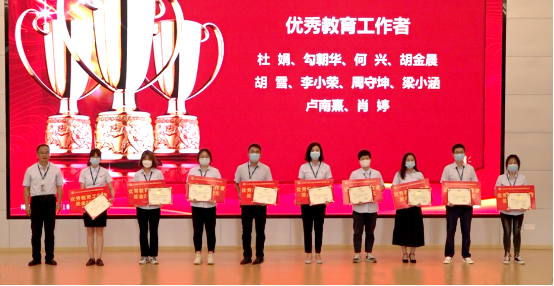 表彰会上,学校对评选出的2021-2022学年“杰出贡献奖”“突出贡献奖”“特别贡献奖”获得者、优秀教师、优秀辅导员、优秀教育工作者、先进集体和第四届“教学之星”获得才进行了表彰,校领导为获奖集体和个人颁发奖牌、证书等。