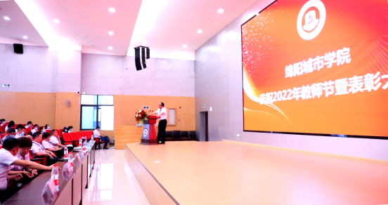 喜迎党的二十大,培根铸魂育新人。在全国第38个教师节来临之际,学校在安州校区召开庆祝教师节暨表彰大会。学校全体校领导、各分院负责人、各职能处室(中心)负责人和教职工代表参会。大会由常务副校长左申兵主持。